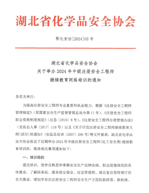 湖北省化學品安全協(xié)會 簡 報 第九期(總第54期)